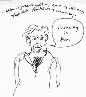 He started his talk with a musical journey through his youth – starting with Abba, moving through jaz, Glen Gould and Brian Eno to Abdullah Ibrahim and the Soweto Boys.