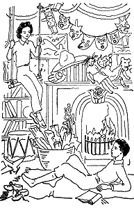 She taps directly into that childhood dream of having access to a place where one can be free of adult supervision, which is adventurous and a little dangerous but somehow still safe. Here is one of her illustrations of “The Office” which is the room in which the Melondy children spend most of their time. A glorious mess, layered with the years of occupation by the Melondy’s: