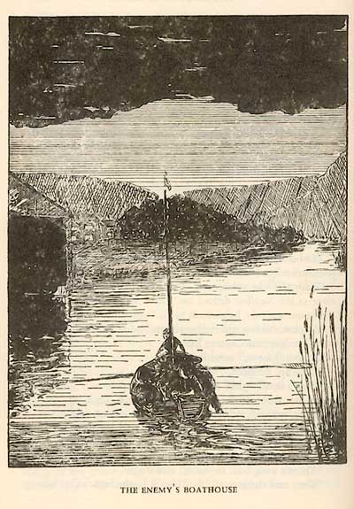 Here the “Swallows” are sneaking up a river to capture the Amazon, Nancy and Peggy’s boat. This is the climax of their friendly war.