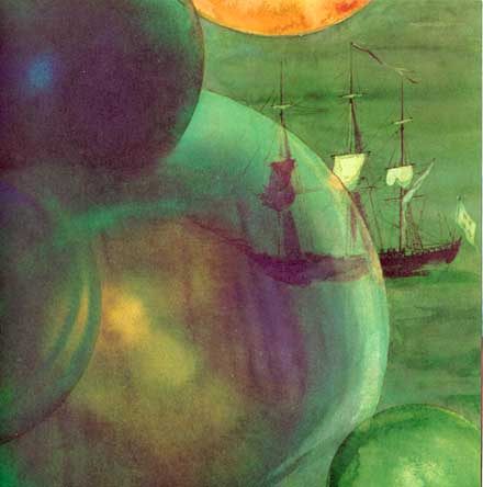 He sails far and wide to many countries. He sees many precious things – glass balls so finely blown they float in the air, tropical spices and fruit, beautyful dolls. But each time he asks himself “Is this the most precious thing in the world?” and sails on.
