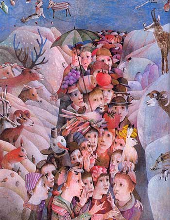 I wonder what I would have thought of December’s Travels if I’d read it as a child. Many of the children’s books I love now I found too intense when I was little. December’s Travels is illustrated by the Slovakian illustrator Dussan Kallay: