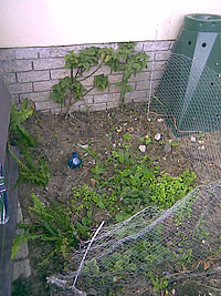 I’ve been working at the blasted wasteland that is our backyard, and changing it from what Brendon calls the “dog habitat” into a garden. There were enemies above and below the ground. Below the soil lurked cut worm that killed everything I planted. Plants that survived the cut worm were chewed, dug up, peed upon, stepped, rolled or sat upon by Anna and Pippin.