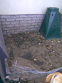 I dealt with the dogs by fencing off areas of the (already very small) garden. Pippin did not approve: