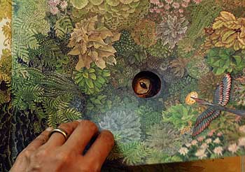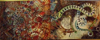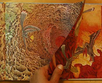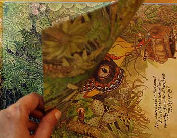 (As you can see, the book should viewed vertically. I’ve put most of the pages horizontally here to save space). Here is a closer look at the forest canopy – notice that eye peering up from below: