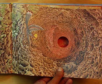 Here is another example of a “hole transition”. Miss Fanshaw follows the bird down a volcanic tunnel: