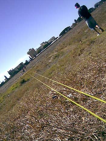 It really is simple. Choose a windy day. Find a big piece of empty land. Take a length of builders line – about 50 meters long, and tie one end to your car.
