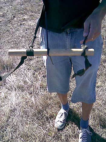 Tie the other end to a handle, and a strap that you can pass around your waist and lean backwards to pull the line tight.