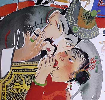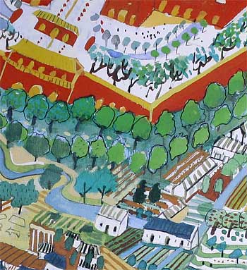 The story is of an Emperor who has everything he desires – travellers visit his castle simply in order to marvel at the beautiful architecture, the priceless artworks, the lovely gardens. I could choose only a few images from the book, as usual: