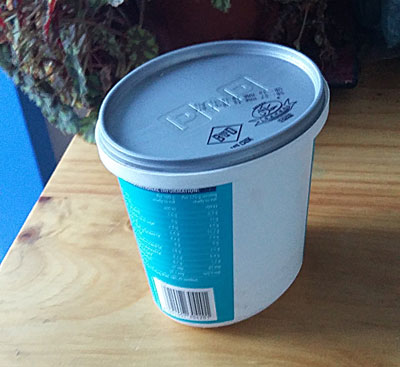What do I pee into, you ask? Males can use bottles, but what about female people? Squatting over a bucket is not ideal. Well, I use a oval one liter yogurt container of the Pick & Pay brand. It’s the perfect shape (narrow to fit between the thighs) and has a tight fitting lid. Every now and then I flush the container out with a touch of diluted Pro Bio septic tank liquid or vinegar. This also makes having my period much easier, since most of the blood ends up in this neat little plastic container which can be poured separately down the drain.